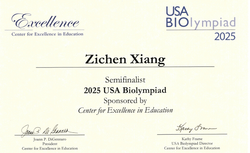 – Prepared collaboratively with peers in the USABO (USA Biology Olympiad) Club, engaging in practice exams and group study sessions.