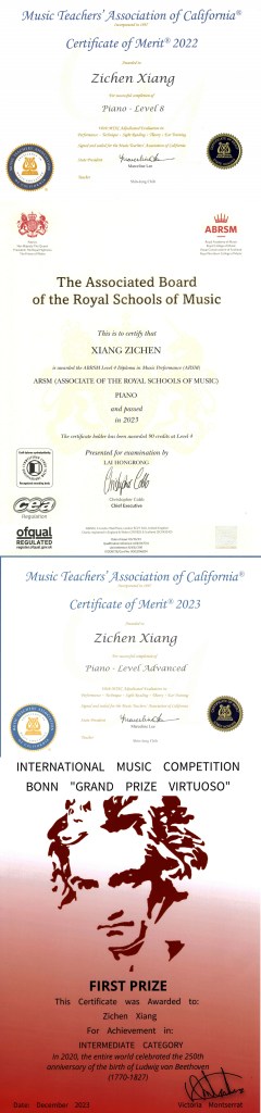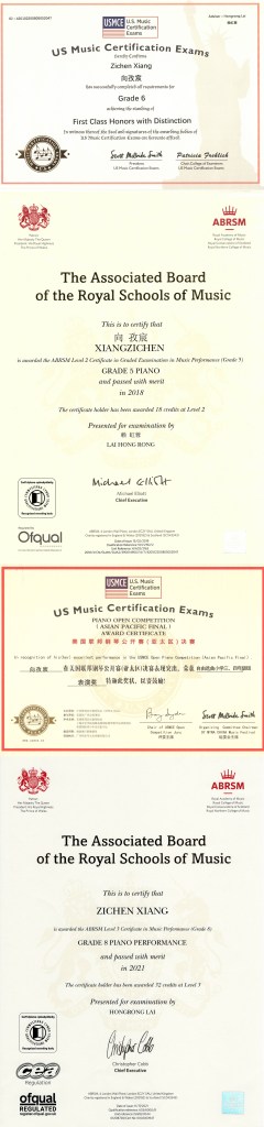 - 2023/10-UK ARSM(Awarded the ABRSM Level 4 Diploma in Music Performance)